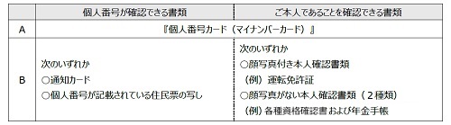 Bの場合の例:通知カードと運転免許証、または通知カードと各種資格確認書および年金手帳