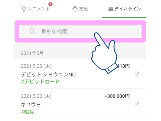 ※取引の備考や摘要、カテゴリ、メモなどをキーワードにして検索できます。