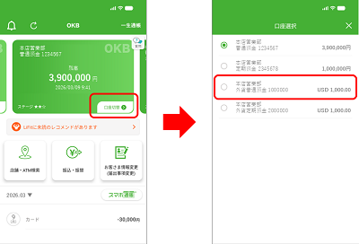 OKBアプリに、OKBの外貨預金と同じ店番・同じCIF(お客さま番号)の普通預金を登録されていない場合、外貨残高や評価円価額を確認することはできませんので、予めご了承ください。