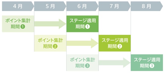 月末時点でのOKBとの取引内容をポイント換算し、獲得したポイントによって翌々月のステージが決定します。
