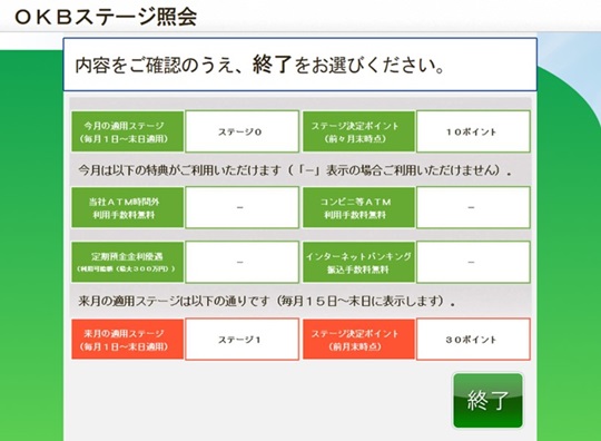 当社ATM 取引メニュー内「OKBステージ照会」にてご確認いただけます。