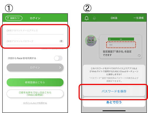 2024年7月17日のバージョンアップ以降のOKBアプリでは、iCloudキーチェーンを使用したログインがご利用いただけます。